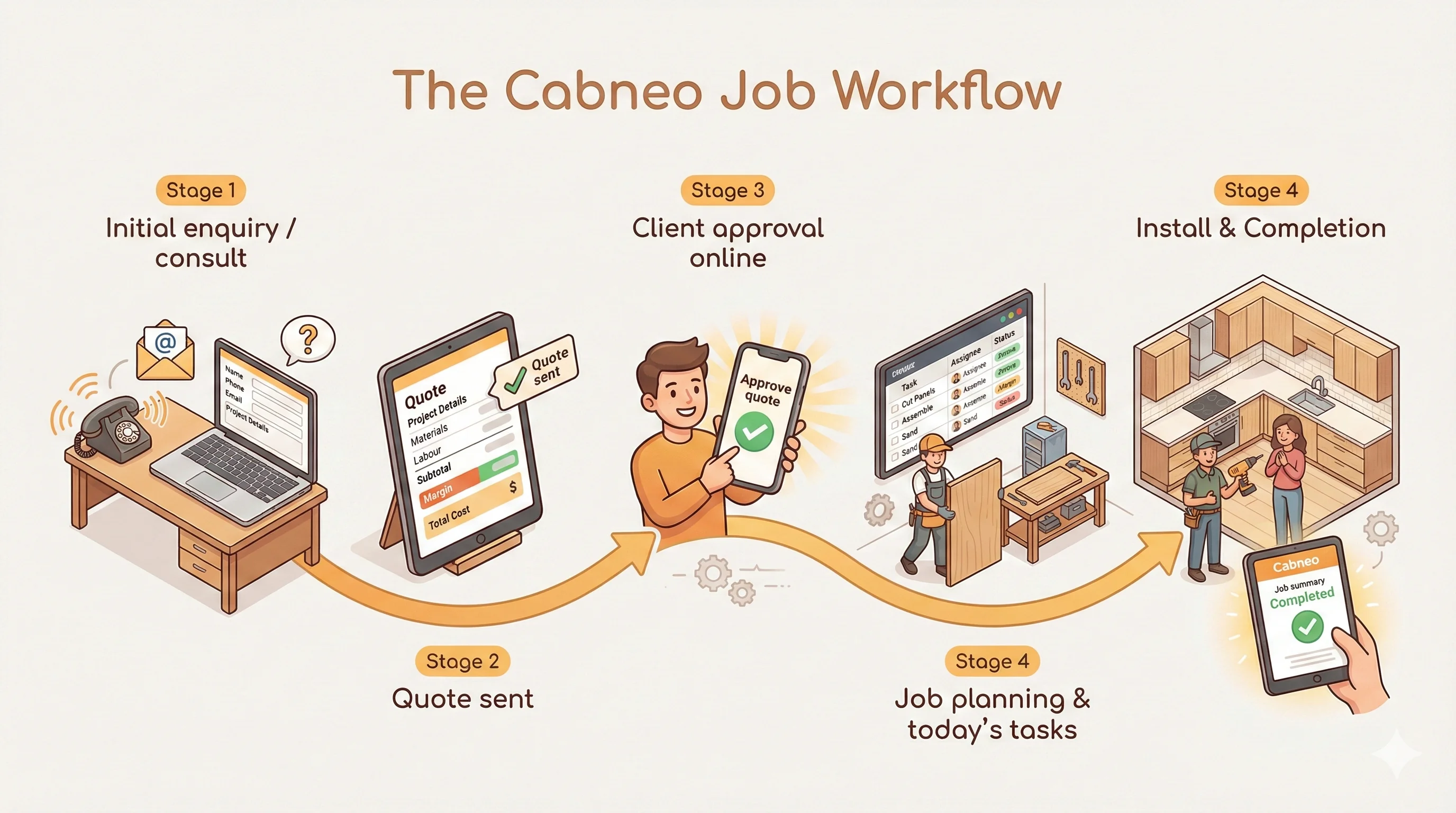 Discover how Cabneo streamlines your cabinet making workflow from initial customer enquiry through to final installation.